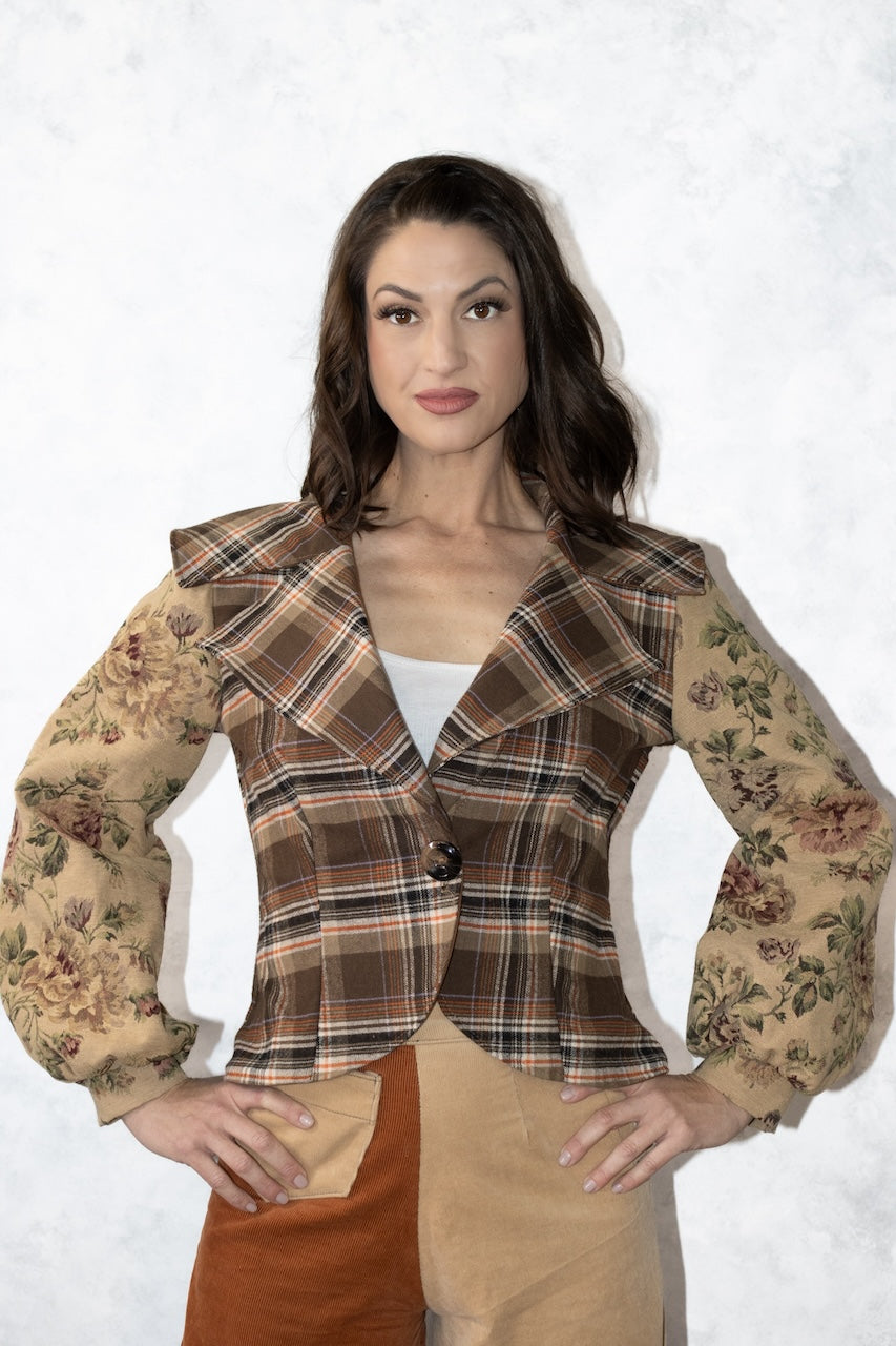 Let your style soar in the "Canterbury House" Puff Sleeved Jacket. This vintage inspired piece boasts vintage detailing with a handmade touch. Mixed fashion eras come together to create a truly one of a kind jacket.