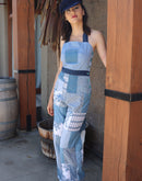 "Dorothy from Kansas" Halter Overalls Cotton print and solid patchwork made from vintage fabrics Ties in the back Front hip pocket Vintage button side closure Chest- 36" Waist -28" Hips-36"...