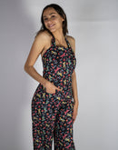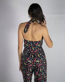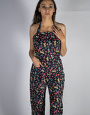 "Jolene" Halter Overalls Lightweight cotton print body Pocket on the hip and bib Cuffs at bottom hem Ties in the back Chest- 33" Waist -28" Hips-34" Inseam 29" One of...