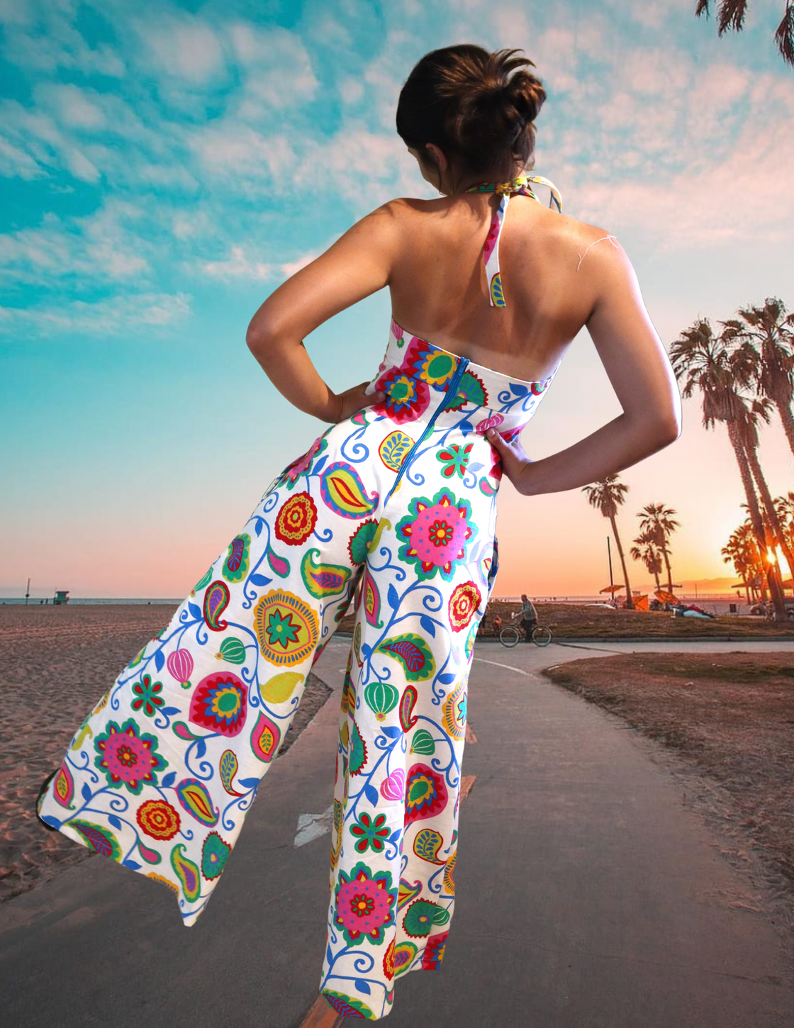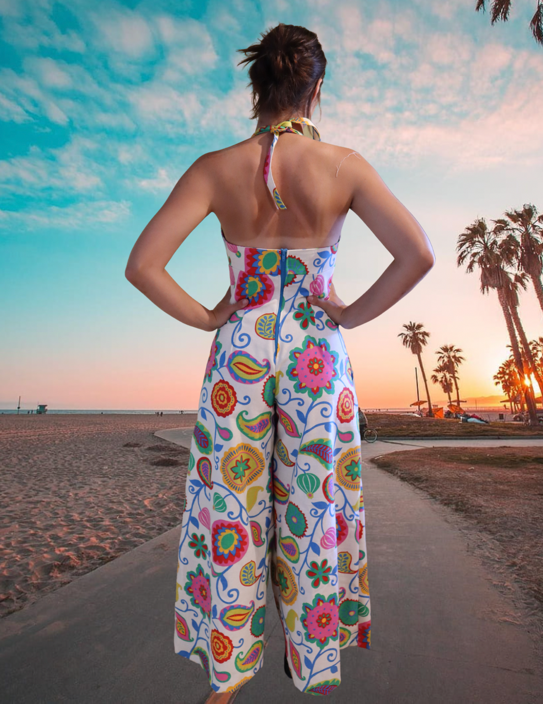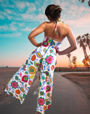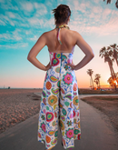"Summer Flowers" One of a kind Palazzo halter jumpsuit