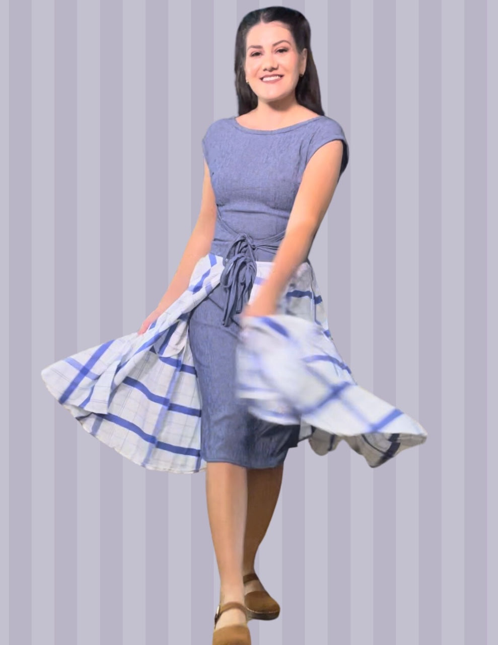 Add a touch of retro-inspired fun to your summer wardrobe with our "Tulip" knee length wrap dress! Handmade with a vintage fabric, this playful dress is designed to make you feel happy and carefree. Perfect for any occasion, t...