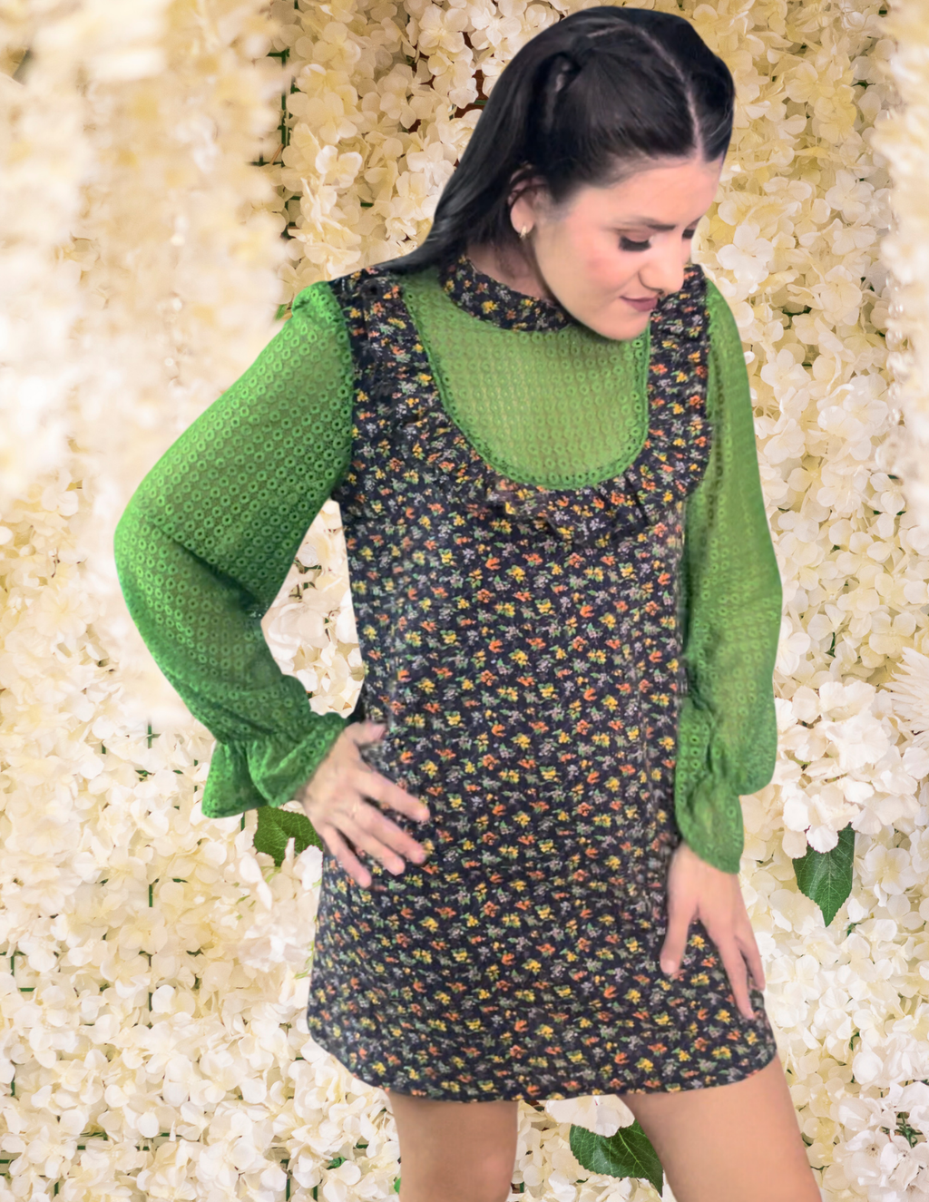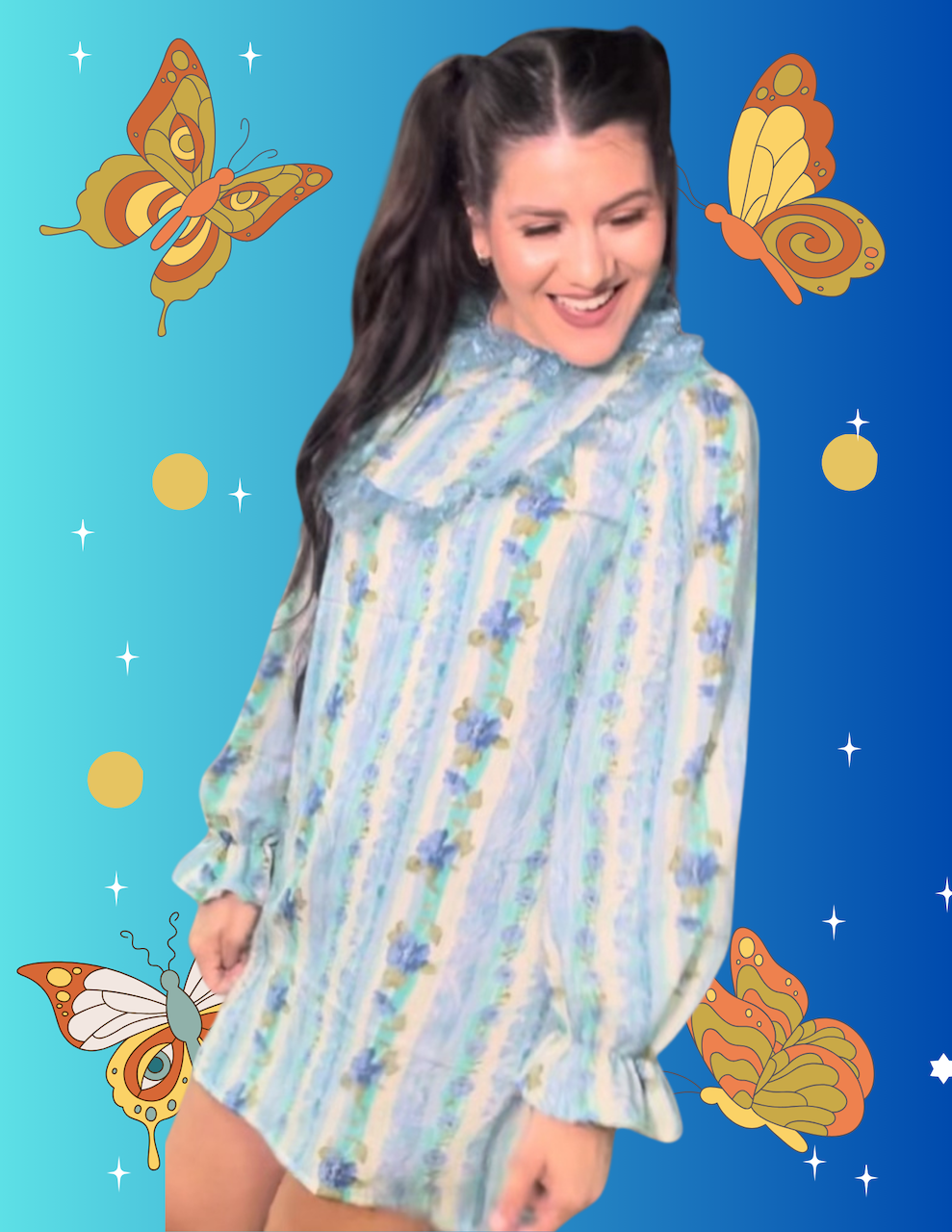 Get playful with our 1960s-inspired mini dress! This floral and lace babydoll dress is perfect for any occasion. Don't miss your chance to rock this retro look!