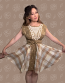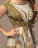 Brown novelty cotton body with monkey print and a brown checked wrap skirt