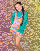 Dress to have fun in this colorful, handmade mini dress. With its vintage inspired design, playful retro vibes, and one-of-a-kind uniqueness, you can't help but have a big smile on your face. A must-have for anyone who loves fun and fashion.
