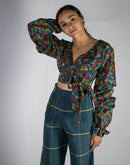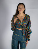 "West Side" Wrap crop top with ruched sleeves