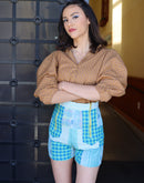 Forgotten Saints LA 1960's "Pop Preppy" High Waisted Shorts High Waisted shorts with double front zippers Handmade with patchwork Madras and Seersucker fabrics Back pocket Only 2 Made 1- Small 1-...