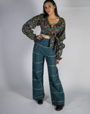 One of a kind high waisted pant Brass double zipper enclosure Teal canvas plaid twill Waist- 28" Hip- 36" Rise- 15" Inseam- 33" Handmade in Long Beach, California with vintage...