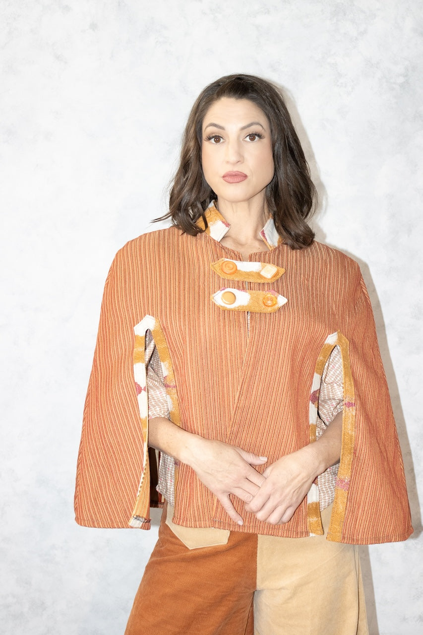 This "Margaux" cape is a vintage-inspired piece that adds a classic and retro touch to any outfit. With its timeless design, it is a versatile addition to your wardrobe. Made with high-quality vintage fabrics, it provides both ...