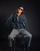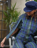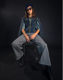 Forgotten Saints LA "Groovy Age of Flite" Jacket with Cape Style Sleeves Navy Plaid Cotton Twill body with contrasting cotton lining Fitted body with cape sleeves Lined with geometric pattern...