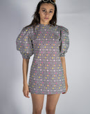 "Brigitte" Puff sleeved mini dress Cotton , retro style puff sleeved mini dress Geometric mod style pattern High neck, Back zip Limited edition, only 2 were made Small- Chest-34" Hips-34"...