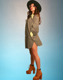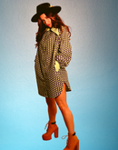 "Flower in the Sun" Oversized Shirt Dress Floral cotton body Contrasting striped oversized pointed collar and striped button cuff Two side pockets Button up front One of a kind Based ...