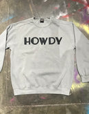 "Howdy" Sweatshirt with felt lettering Crewneck sweatshirt Soft, vintage feel heather grey body Hand sewn custom felt lettering Howdy lettering in black felt Unisex sizing Hand crafted in Long Beach,...