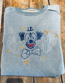 "Hey Kids!" Hand chainstitched crewneck sweatshirt Soft, vintage feel , heather light blue body Raglan cut with exposed seams Hand chainstitched vintage clown design Unisex sizing Hand crafted in ...