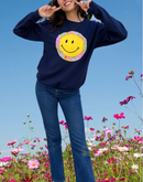 Smiley Face sweatshirt Navy Blue crewneck sweatshirt Soft, vintage feel  Hand sewn custom felt design with floral outline Unisex sizing Hand crafted in Long Beach, Ca Made to order. Please...