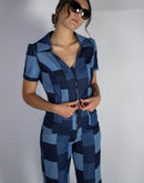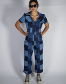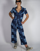 "Dynomite" Patchwork Coveralls Denim patchwork coverall Front Pockets Metal zip front Cropped length, short sleeves One of a kind Chest 40" Waist 30" Hips 38" Rise 32" Inseam 26" Limited...