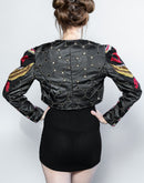 Forgotten Saints LA "Midnight Rider" Vegan Leather Cropped Moto Jacket One of a Kind Black Patchwork Vegan Leather Body USA Moto Eagle Print Sleeves Size SM/Med In Stock , Ready...